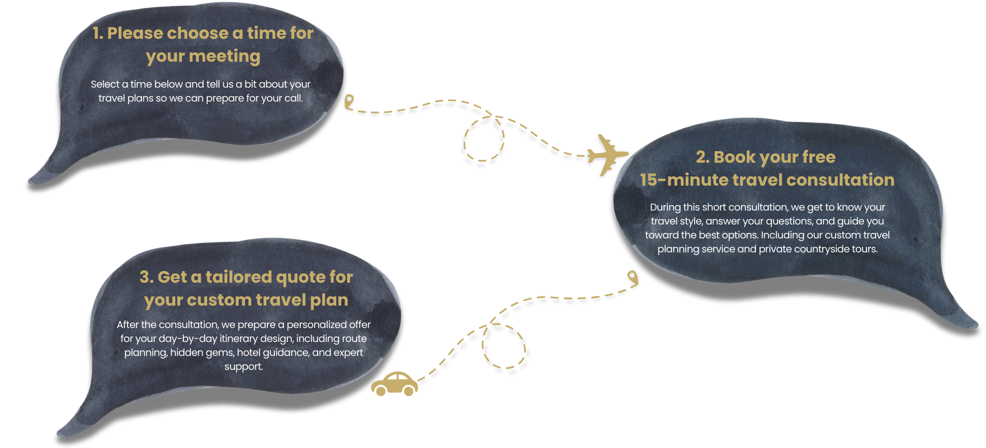 From the very first step, we guide you through the planning process and help you find the best routes, experiences, and hidden gems.